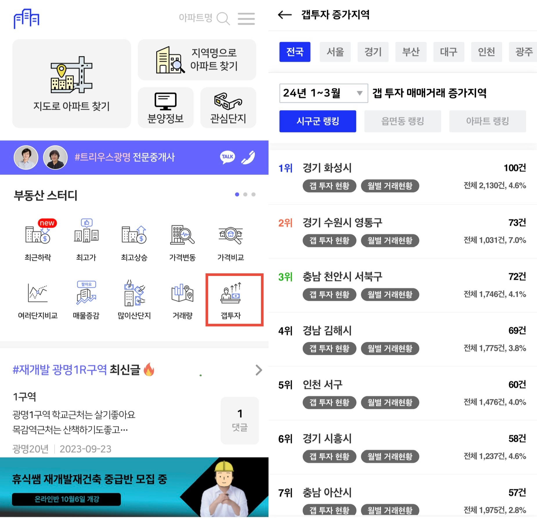 아실 앱과 부동산 사이트를 활용한 갭투자 분석
