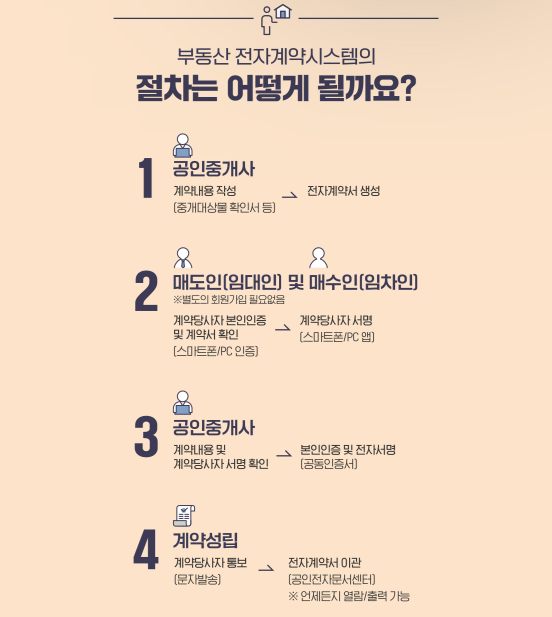 전자계약시스템을 이용하면 매도인과 매수인이 직접 만나지 않아도 계약을 체결할 수 있습니다. 휴대폰이나 PC를 통해 언제 어디서나 계약이 가능하며, 계약서 보관도 전자적으로 이루어져 별도의 보관 공간이 필요 없습니다.