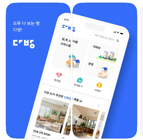 현재 가장 인기 있는 부동산 앱 중 하나로, 아파트, 분양, 원룸, 오피스텔, 빌라, 상가 등의 월세 매물을 취급합니다. 아래의 버튼을 클릭하면 다방 앱을 방문할 수 있습니다.