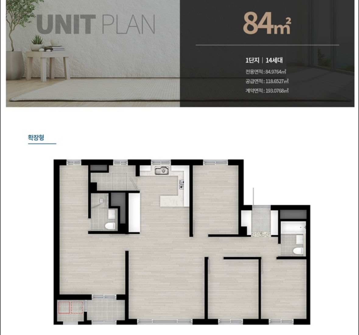 판교밸리자이는 지하 2층, 지상 최고 14층, 아파트 전용 60~84㎡ 3개동 350 가구와 오피스텔 전용 50~84㎡ 282실로 조성돼 있습니다. 이 중 84㎡ 1 가구가 청약 대상입니다. (102동 503호 84㎡ A타입)