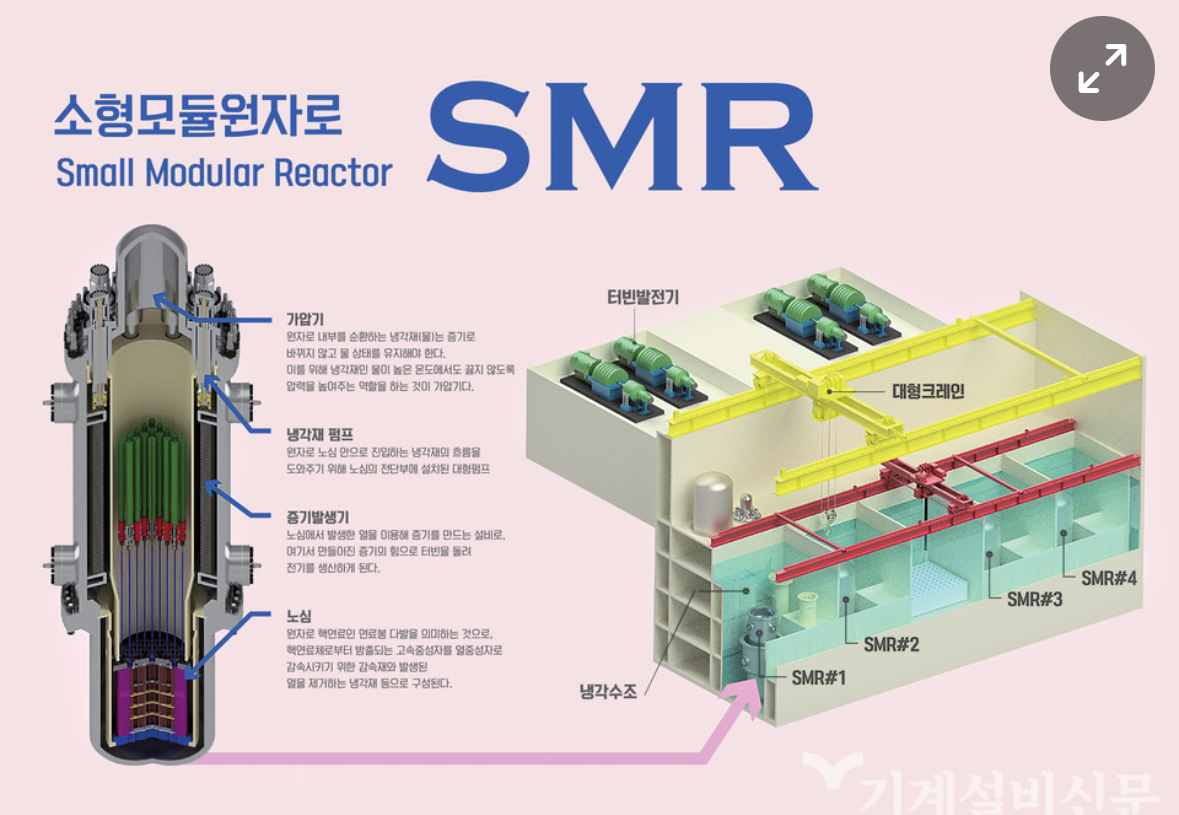 소형모듈원자로(SMR)는 기존 대형 원자로보다 작고 모듈화된 원자로로, 설계 및 건설이 더 용이하며, 안전성과 경제성을 동시에 갖춘 혁신적인 에너지 기술입니다.