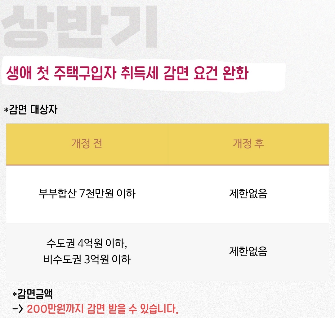 또한 주택담보대출 자격 완화, 특례보금자리론의 대상 확대 등 금융혜택의 변화도 눈에 띕니다.