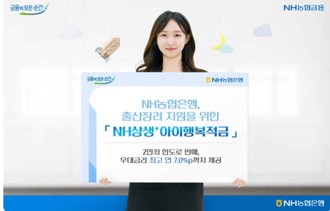'NH상생+아이행복적금'은 결혼, 임신, 난임, 출산 등 가족 관련 주요 생애 사건을 경험한 고객들을 위해 NH농협은행에서 출시한 고금리 적금 상품입니다.